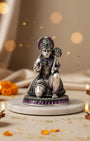 This Aashirwad Hanuman idol, meticulously crafted in BIS-hallmarked 925 silver, weighs 120 grams and stands 3 inches tall. Showcasing Lord Hanuman in a kneeling blessing posture, the idol exudes power, humility, and divine protection. Accentuated with radiant green and violet gemstone inlays, every detail—from the mace (gada) to the ornate crown—highlights superior craftsmanship. Symbolizing strength, devotion, and unwavering faith, this idol is ideal for pooja spaces, spiritual gifts, or for invoking the blessings of Bajrangbali in your home.