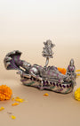 Anantha Padmanabha Swamy idol in 925 Silver. Vishnu in yogic repose on Adishesha, intricately crafted by Rajatva with divine elegance.