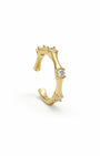 Nature's most elegant structure, reimagined in gold. An open adjustable ring crafted in a bamboo-inspired segmented form each knotted joint punctuated with a prong-set solitaire crystal organic in spirit, refined in execution. The ring that quietly commands every room.