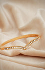 Wear your crown on your wrist. A polished gold bangle shaped into a sharp V-chevron front, entirely lined with sparkling pavé crystals from tip to tip regal in form, radiant in finish. The kind of piece that feels like a quiet victory every time you put it on.