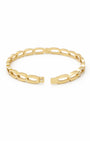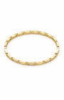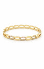 Gold plated kada with a link-chain motif — alternating pavé crystal accents, interlocking oval silhouette, and a secure hinge clasp. The open-work structure offers a light, modern feel while maintaining the bold presence of a classic link bracelet. Polished and precise from every angle.