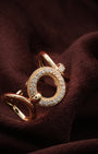 Crafted in premium stainless steel with an 18k gold plated finish. Features a wide double band with two interlocked oval loop tops one plain polished gold and one fully pavé crystal-set linked together in a figure-of-eight silhouette protected by our anti-tarnish technology for lasting brilliance.
