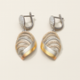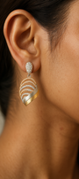 Crafted in Pure Silver 925, these earrings showcase curved golden and silver arcs edged with pavé-set shimmer, creating a radiant play of texture and motion.