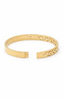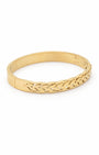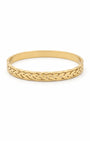 Classic and symbolic. This gold plated kada features a beautifully detailed laurel wreath motif, with interlocking leaf patterns etched seamlessly around the band. Representing victory and timeless style, the textured "wheat" design creates a sophisticated play of light and shadow on the wrist. Effortlessly traditional, quietly luxurious, made for every wrist.
