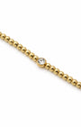 Simple. Seamless. Quietly stunning. A continuous strand of high-polish gold beads with a single bezel-set crystal at the center one flash of sparkle in an otherwise perfectly minimal piece. The kind of bracelet you never take off.