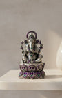 - Craft & Design: Handcrafted idol of Lord Ganesha seated on a lotus, featuring refined silver detailing and intricate gemstone embellishments