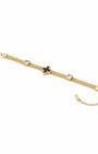 Bold. Refined. Strikingly elegant. A sleek gold mesh bracelet anchored by a signature black clover motif at the center, accented with radiant crystal details a perfect balance of edge and sophistication. Designed to stand out, yet effortless to wear.