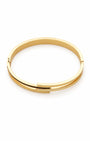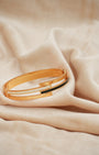 Gold plated kada with a monochrome bypass motif — black and white enamel rails, architectural split-band design, and a secure hinge mechanism. The geometric overlapping terminals provide a sharp, high-fashion look that plays with symmetry and color. Polished and precise from every angle.