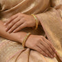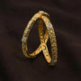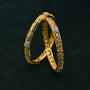 Oravelle is an intricately crafted bangle pair made in Silver 925 with a Gold Polished finish. The floral engraved pattern with stone accents gives it an elegant traditional appeal. Includes lifetime warranty.