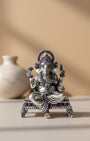 - Craft & Design: Handcrafted idol of Lord Ganesha seated on a paata platform in leg-down posture, featuring detailed silver artistry and refined gemstone embellishments