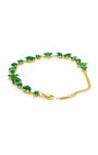 Every wrist deserves a garden. A cascading arrangement of vivid emerald-green crystals — each one cut into a different shape flows along a gleaming 18k gold plated chain, catching the light from every angle. This is jewellery that doesn't whisper; it speaks.