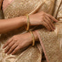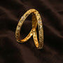 Zarivra is a finely crafted bangle pair made in Silver 925 with a Gold Polished finish. The curved engraved detailing with subtle stone accents gives it an elegant traditional character. Includes lifetime warranty.